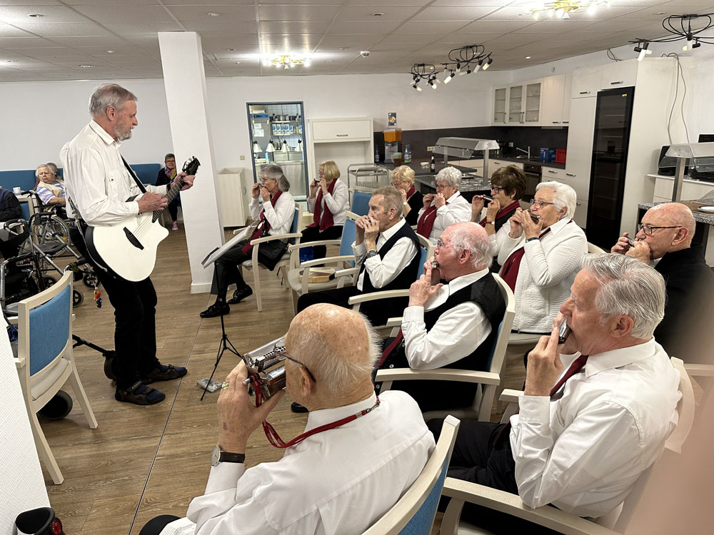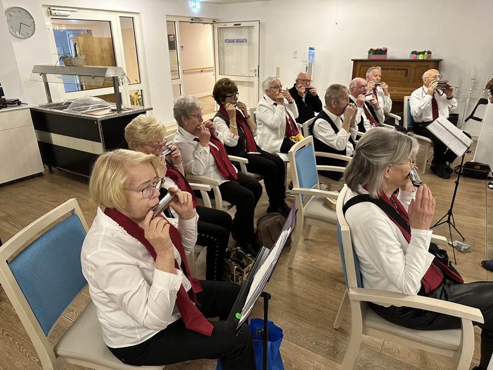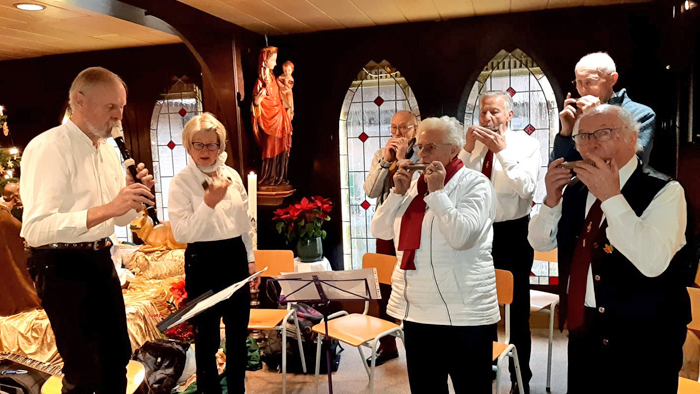 Im Brabenderstift in Zülpich hatte Harmonica Sound von Oktober bis Dezember gleich mehrere Auftritte. Beim hausinternen Reibekuchenfest am 12. Oktober 2023 sorgte die Mundharmonikagruppe unter Leitung von Winfried Schmadel mit schwungvollen Liedern für beste Stimmung.
