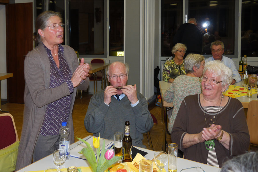 Für Lorenz Thyrian, musikalischer Leiter der Gruppe, war der Auftritt einmal mehr ein Heimspiel, wohnt er doch seit langem in Ülpenich. Zu seiner musikalischen Begleitung gehörten drei junge Musiker, für deren gelungenen Auftritt mit den Mundharmonikas die Senioren sie mit viel Lob und Beifall bedachten.