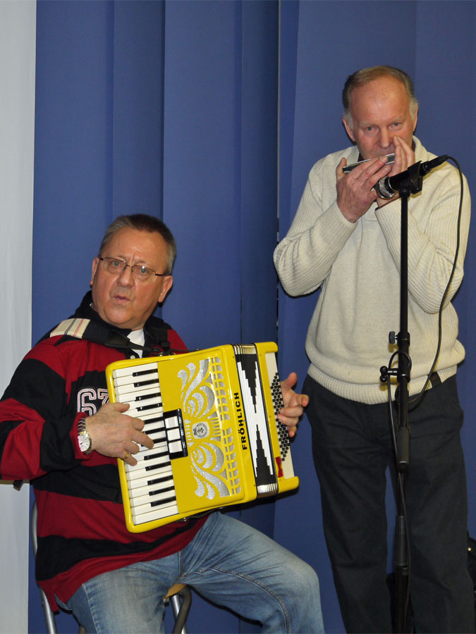 Damit waren Frühlingsstimmung und gute Laune garantiert. Kräftiges Mitsingen der Bewohner half mit, den Winter in die Flucht zu schlagen. Harmonica Sound legte noch eine dicke Prise Volks- und Stimmungslieder obendrauf: Dagegen hatte der Winter wahrlich keine Chance!
