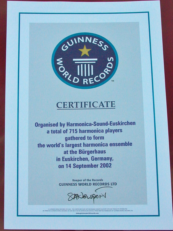 Anlässlich des Stadtjubiläums (700 Jahre Euskirchen) hatte Harmonica Sound die "verrückte" Idee mit dem ehrgeizigen Ziel, mindestens 700 Mundharmonikaspielerinnen und -spieler in Euskirchen zu versammeln, um gemeinsam die Lieder "Bruder Jakob" und "Oh when the saints" zu spielen.