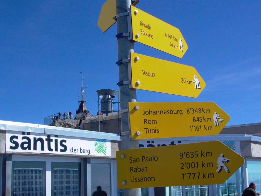 Unsere Eglisauer Gastgeber hatten ein Besuchsprogramm der Spitzenklasse ausgearbeitet. So begleiteten sie ihre Euskirchener Gäste auf die Insel Mainau, auf den Zürichsee, in die Stadt Zürich und auf den Gipfel des Säntis. Dank bester Beziehungen hatten die rührend bemühten Gastgeber selbstverständlich für allerbestes Wetter gesorgt: Sehr zur Freude der Weltreisenden aus Euskirchen.