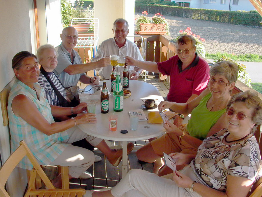 "Unvergessen ist der Besuch einer kleinen Euskirchener Abordnung bei unseren Mundharmonikafreunden in Eglisau (Schweiz) im September 2003. Die kleine Gruppe aus Euskirchen verwöhnten sie mit einem fürstlichen Essen in ihrem Clubheim.