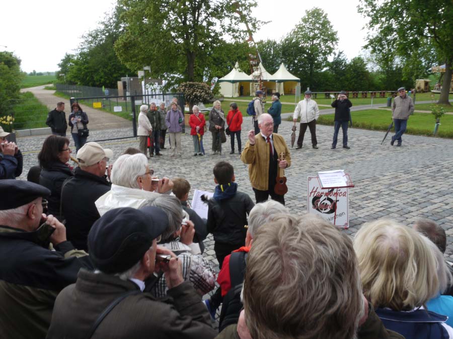 Ein starker Auftritt! Die Mundharmonikas spielen immer! Bei jedem Wetter! So auch in Zülpich! Beim Auftritt mit rund 50 Spielerinnen und Spielern auf der Landesgartenschau 2014.
