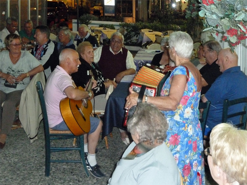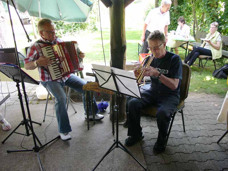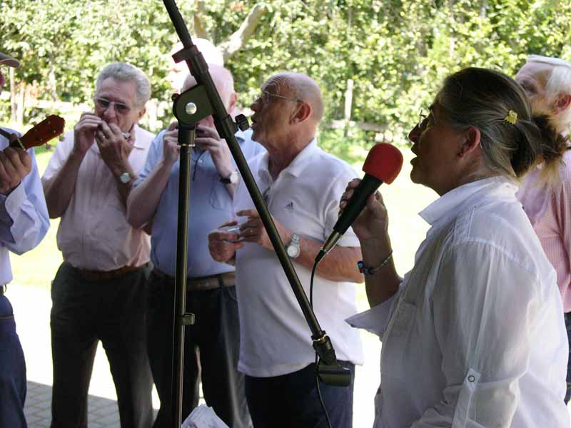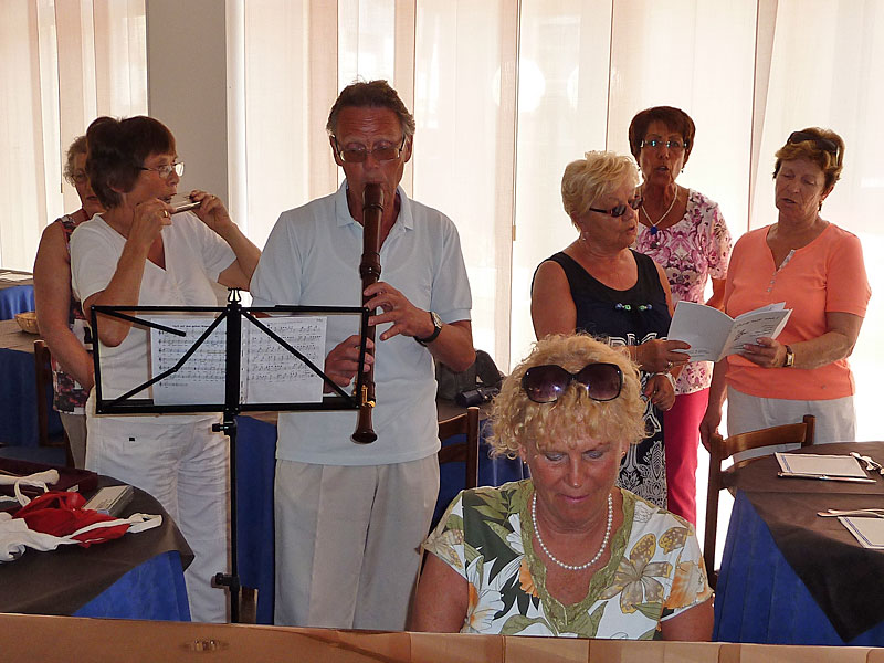 ...und auch die Musik kam nicht zu kurz. Für die große Gruppe der Urlauber spielten die Musikanten an drei Abenden auf, allen voran als musikalischer Leiter Peter Michael mit Flöte, Fritz Affeld mit Gitarre und Ulla Mielich mit Akkordeon, dazu eine gute Handvoll Mundharmonikas.