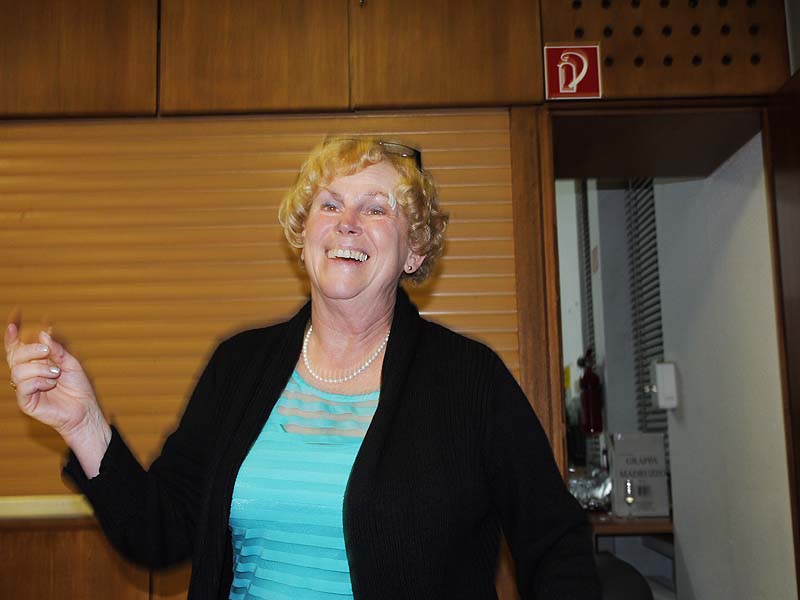 Elisabeth begrüßte die Anwesenden und wünschte entspannte und fröhliche Stunden. Agi Hüllbrock, die Vorsitzende, kam etwas später, aber sie kam. Zur großen Freude aller Anwesenden. Sie hatte sich am Tag zuvor am Kopf verletzt, ließ sich aber nicht unterkriegen und vor allem das Feiern mit ihren Muhas nicht nehmen.