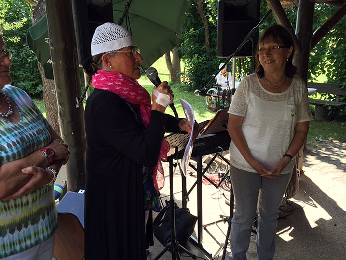 Mitglied des Pfarrgemeinderates, Frau Jule Rüber, begrüßte die Musikanten, die in stattlicher Zahl zur Unterhaltung der Pfarrfestbesucher angetreten waren. Ihr und ihren Worten galt der Dank der Vorsitzenden Agi Hüllbrock von Harmonica Sound.
