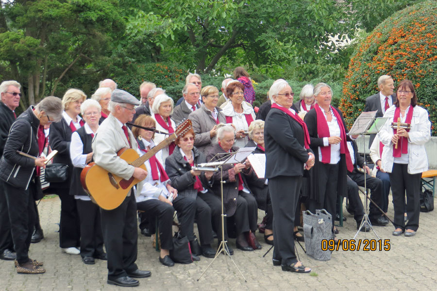 Buntes Treiben und fröhlich-entspannte Stimmung herrschten bei strahlendem Sonnenschein auf dem Gelände. Bewohner und Gäste stimmten sogleich in den Melodienreigen ein und sangen munter mit.
