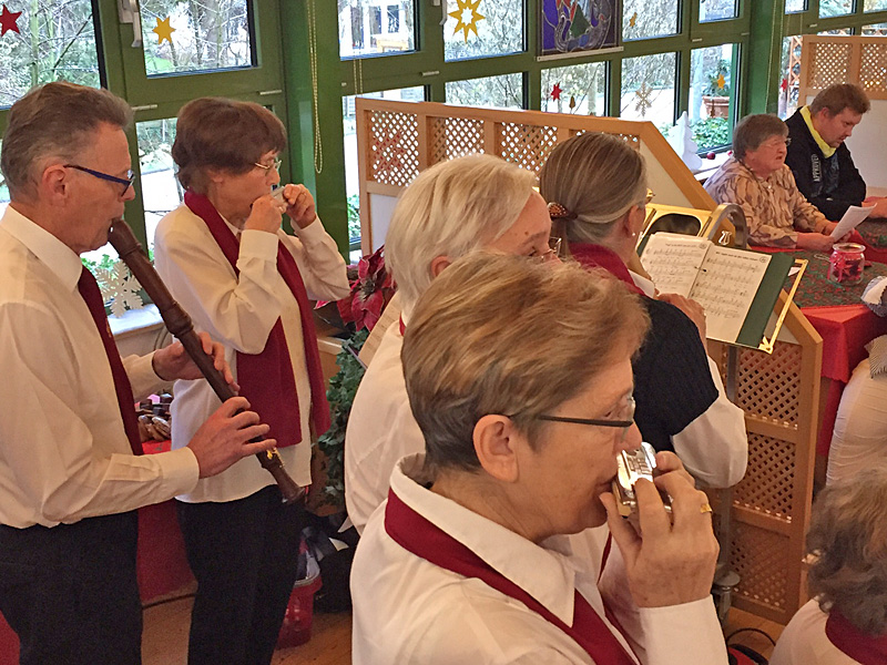 Eine knappe Stunde unterhielt die Mundharmonikagruppe die Heimbewohner mit schönen alten Volksliedern.